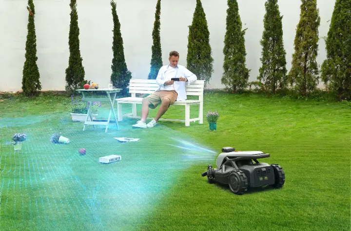 Seamlessly navigate shaded zones, narrow passages, and areas where GPS-based mowers lose signal. Its AI vision adapts to any intricate layout in real-time.